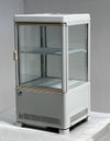 卓上タイプ、前後両面開きの4面ガラス冷蔵ショーケースです