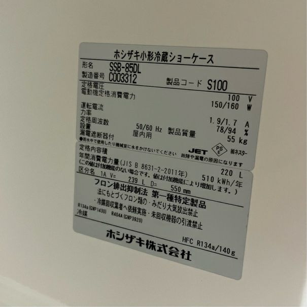 他の画像を見る 2023年製 ホシザキ 冷蔵ショーケース SSB-85DL 東京足立店 中古品 単相100V 定価 ¥ 276,100 のところ 販売価格 ¥ 82,500 税込 W850xD550xH1080商品ランク:B カートに入れる お気に入りに登録する