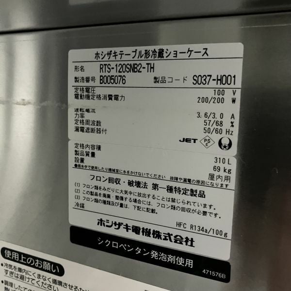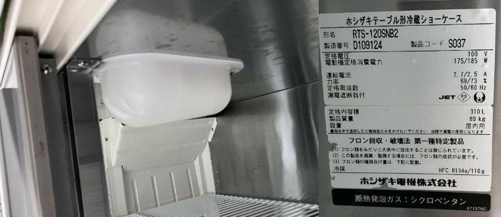 他の画像を見る 2014年製 ホシザキ テーブル形冷蔵ショーケース RTS-120SNB2 東京町田店 中古品 単相100V 販売価格 ¥ 56,100 税込 SOLD OUT W1200xD600xH800商品ランク:B 詳細を見る お気に入りに登録する