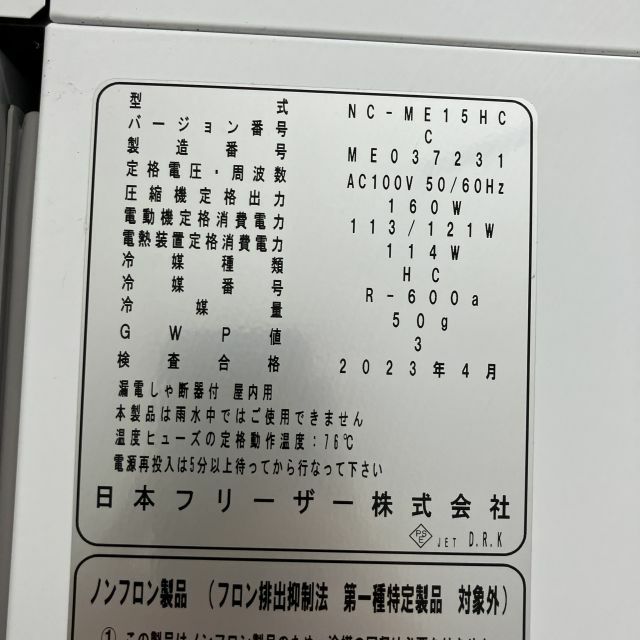 2023年製 日本フリーザー 薬用冷蔵ショーケース NC-ME15HC
