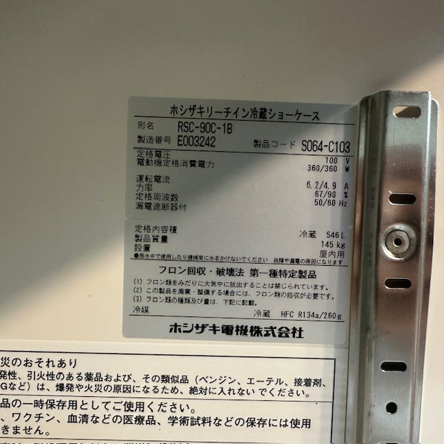 他の画像を見る 2015年製 ホシザキ リーチイン冷蔵ショーケース RSC-90C-1B 東京足立店 中古品 単相100V 販売価格 ¥ 132,000 税込 SOLD OUT W900xD650xH1880商品ランク:B 詳細を見る お気に入りに登録する