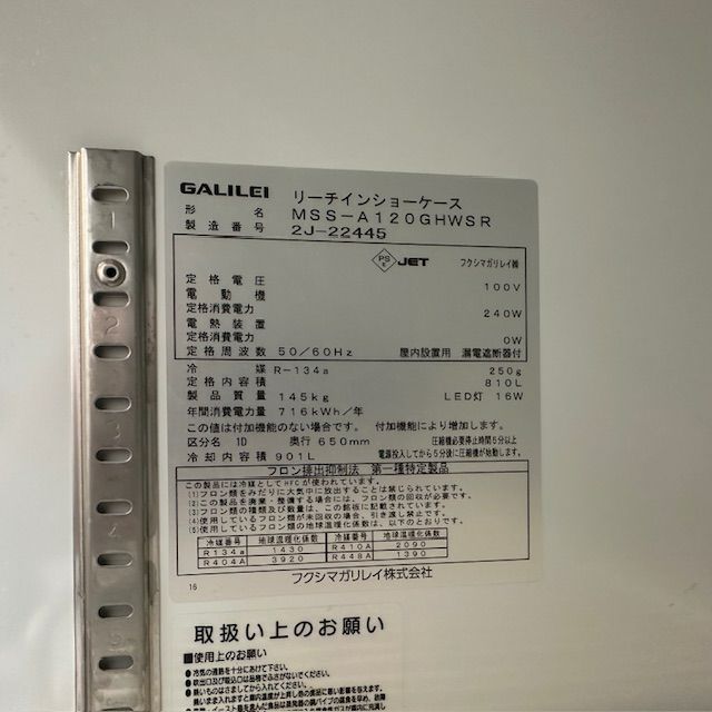他の画像を見る 2015年製 フクシマガリレイ リーチインショーケース MSU-090GHWSR 東京足立店 中古品 単相100V 定価 ¥ 722,700 のところ 販売価格 ¥ 110,000 税込 SOLD OUT W900xD450xH1900商品ランク:B 詳細を見る お気に入りに登録する