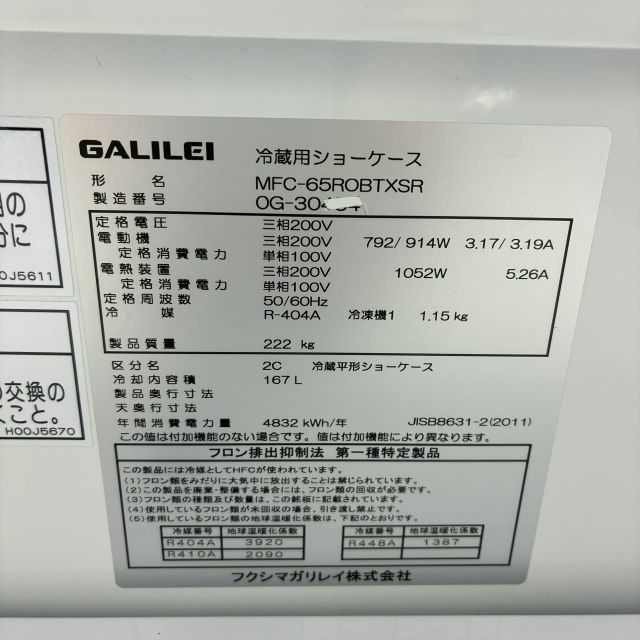 2020年製 フクシマガリレイ 平型オープン冷蔵ショーケース MFC-65ROBTXSR