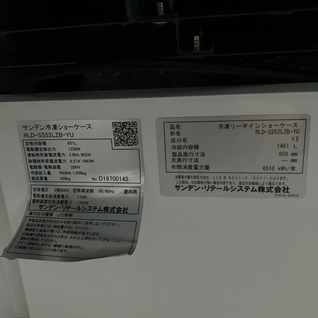 2019年製 サンデン リーチイン冷凍ショーケース(4) RLD-SS52LZB-YU