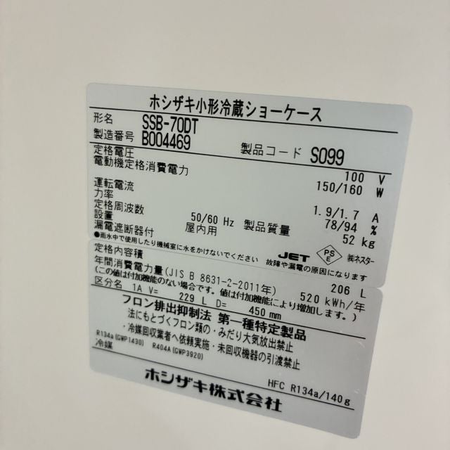 他の画像を見る 2022年製 ホシザキ 冷蔵ショーケース SSB-70DT 大阪店 中古品 単相100V 定価 ¥ 279,400 のところ 販売価格 ¥ 77,000 税込 SOLD OUT W700xD450xH1410商品ランク:B 詳細を見る お気に入りに登録する