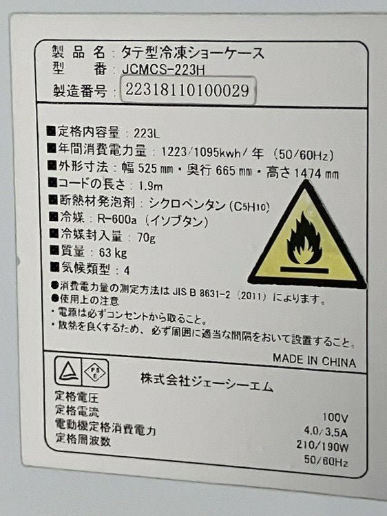 他の画像を見る 2022年製 JCM 冷凍ショーケース JCMCS-223H 東京町田店 中古品 単相100V 販売価格 ¥ 44,000 税込 SOLD OUT W530xD670xH1455商品ランク:B 詳細を見る お気に入りに登録する