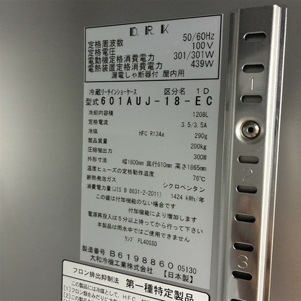 他の画像を見る 2023年製 大和冷機 リーチイン冷蔵ショーケース 303AUJ-EC 東京町田店 中古品 三相200V 販売価格 ¥ 220,000 税込 W900xD600xH1985商品ランク:A カートに入れる お気に入りに登録する