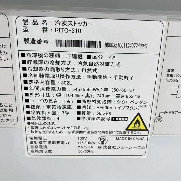 他の画像を見る 2024年製 JCM 冷凍ストッカー RITC-310 東京町田店 中古品 単相100V 販売価格 ¥ 38,500 税込 W1104xD743xH852商品ランク:A カートに入れる お気に入りに登録する
