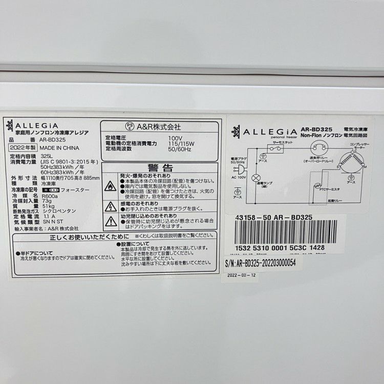 他の画像を見る 2022年製 冷凍ストッカー AR-BD325 東京町田店 中古品 単相100V 販売価格 ¥ 39,600 税込 W1110xD705xH885商品ランク:A カートに入れる お気に入りに登録する