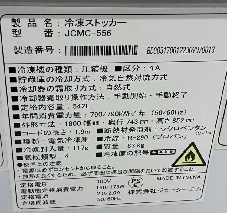 他の画像を見る 2023年製 JCM 冷凍ストッカー JCMC-556 東京町田店 中古品 単相100V 販売価格 ¥ 88,000 税込 SOLD OUT W1800xD743xH852商品ランク:A 詳細を見る お気に入りに登録する