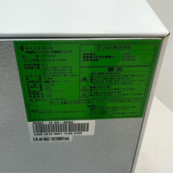 他の画像を見る 2022年製 アレジア アップライトフリーザー ARーBD62 東京足立店 中古品 単相100V 販売価格 ¥ 12,650 税込 SOLD OUT W487xD551xH718商品ランク:A 詳細を見る お気に入りに登録する
