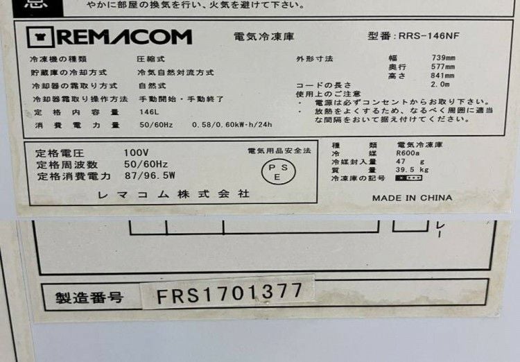 他の画像を見る 2017年製 レマコム 冷凍ストッカー RRS-146NF 東京町田店 中古品 単相100V 販売価格 ¥ 17,600 税込 SOLD OUT W739xD577xH887商品ランク:B 詳細を見る お気に入りに登録する