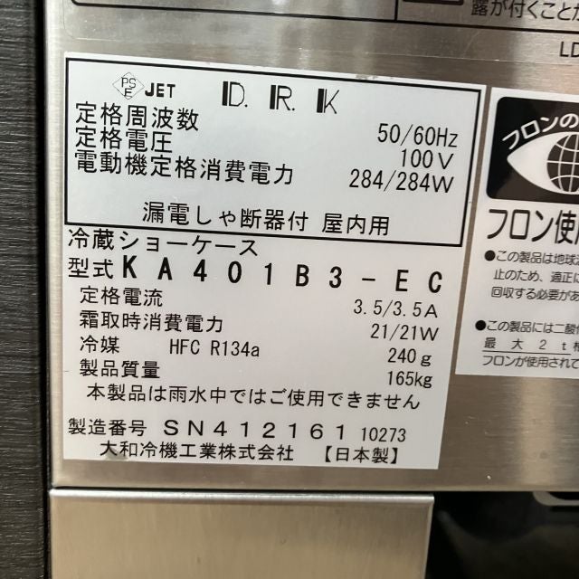 他の画像を見る 2023年製 大和冷機 対面冷蔵ショーケース KA401B3-EC 大阪店 中古品 単相100V 販売価格 ¥ 356,400 税込 SOLD OUT W1200xD600xH1150商品ランク:A 詳細を見る お気に入りに登録する