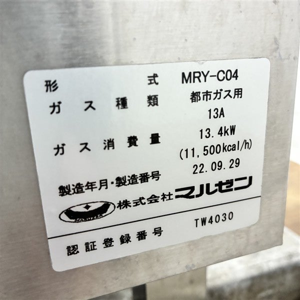 他の画像を見る 2020年製 マルゼン ゆで麺機 MRY-C04 東京足立店 中古品 プロパンガス 定価 ¥ 475,200 のところ 販売価格 ¥ 154,000 税込 SOLD OUT W450xD600xH800+150商品ランク:B 詳細を見る お気に入りに登録する
