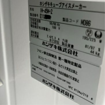 他の画像を見る 2025年製 ホシザキ 35kg製氷機 [2] IM-35M-2 東京足立店 未使用品 単相100V 定価 ¥ 686,400 のところ 販売価格 ¥ 239,800 税込 W500xD450xH800商品ランク:AA カートに入れる お気に入りに登録する