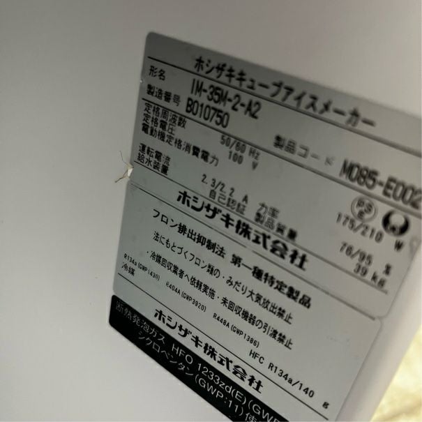 他の画像を見る 2022年製 ホシザキ 35kg製氷機 IM-35M-2-A2 東京足立店 中古品 単相100V 定価 ¥ 686,400 のところ 販売価格 ¥ 195,800 税込 W500xD450xH800商品ランク:B カートに入れる お気に入りに登録する