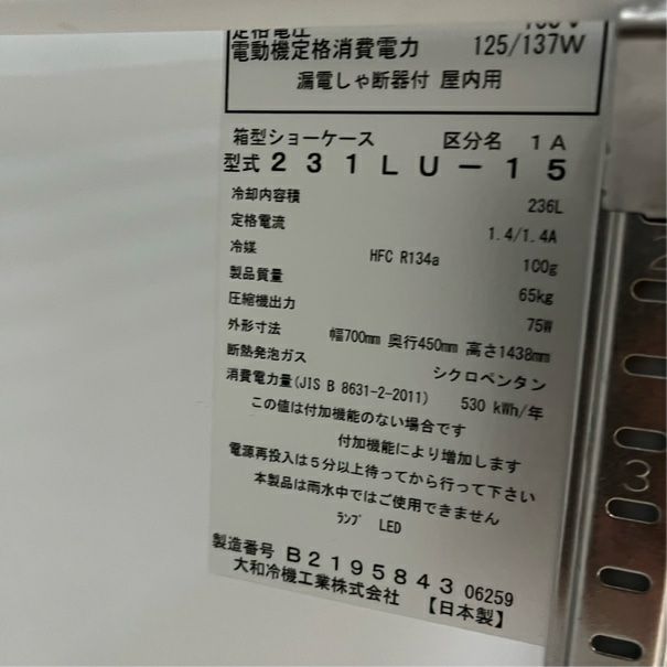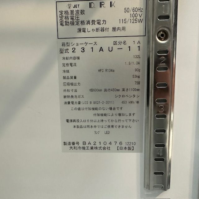 他の画像を見る 2020年製 大和冷機 冷蔵ショーケース 231AU-11 東京足立店 中古品 単相100V 販売価格 ¥ 74,800 税込 W600xD450xH1105商品ランク:A カートに入れる お気に入りに登録する
