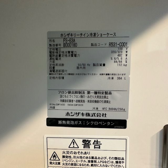 他の画像を見る 2022年製 ホシザキ リーチイン冷凍ショーケース FS-63A 東京足立店 中古品 単相100V 販売価格 ¥ 264,000 税込 W625xD800xH1970商品ランク:A カートに入れる お気に入りに登録する