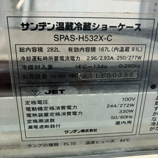他の画像を見る 2011年製 サンデン 冷蔵ショーケース SPAS-H532X-C 東京足立店 中古品 単相100V 販売価格 ¥ 82,500 税込 W500xD600xH1845商品ランク:B カートに入れる お気に入りに登録する