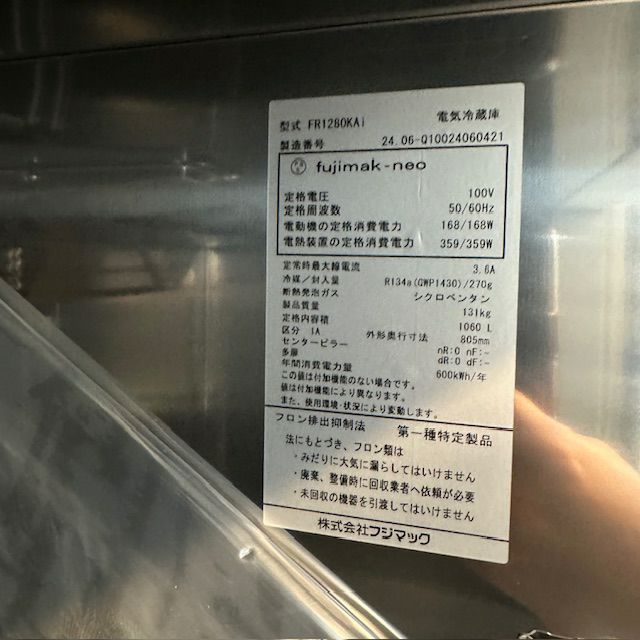 他の画像を見る 2024年製 フジマック 縦型冷蔵庫 FR1280KAi 東京足立店 未使用品 単相100V 販売価格 ¥ 198,000 税込 W1200xD805xH1950商品ランク:AA カートに入れる お気に入りに登録する