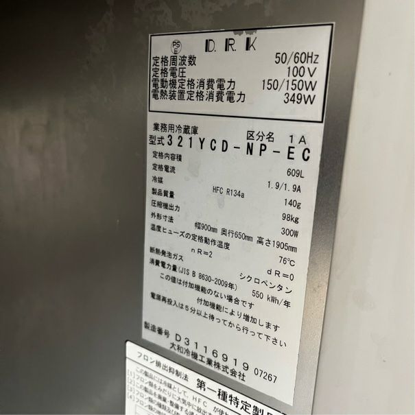 他の画像を見る 2017年製 大和冷機 縦型冷蔵庫 321YCD-NP-EC 東京足立店 中古品 単相100V 定価 ¥ 1,089,000 のところ 販売価格 ¥ 99,000 税込 SOLD OUT W900xD650xH1905商品ランク:C 詳細を見る お気に入りに登録する