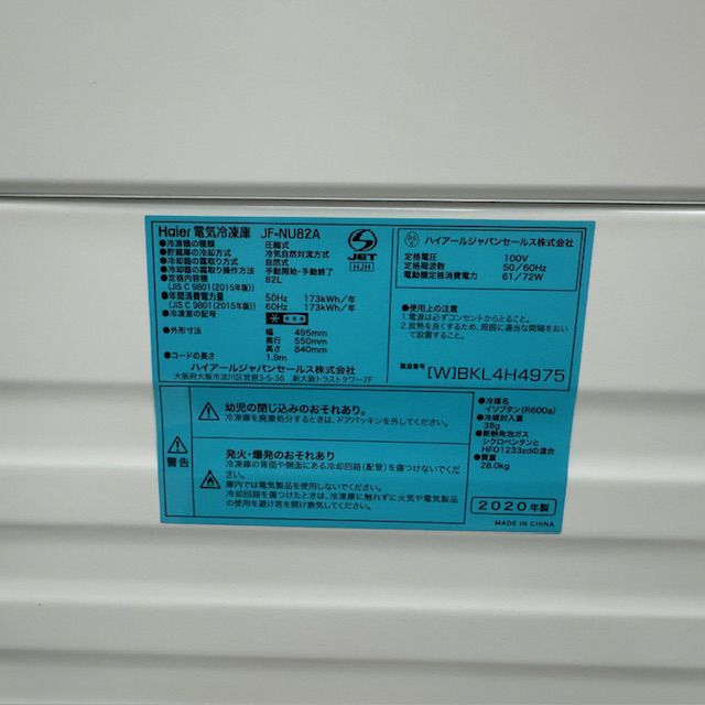 他の画像を見る 2020年製 ハイアール 冷凍ストッカー JF-NU82A 東京足立店 中古品 単相100V 販売価格 ¥ 15,400 税込 SOLD OUT W495xD550xH840商品ランク:B 詳細を見る お気に入りに登録する