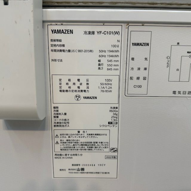 他の画像を見る 2022年製 山善 冷凍ストッカー YF-C101(W) 東京足立店 中古品 単相100V 販売価格 ¥ 14,300 税込 SOLD OUT W545xD550xH845商品ランク:B 詳細を見る お気に入りに登録する