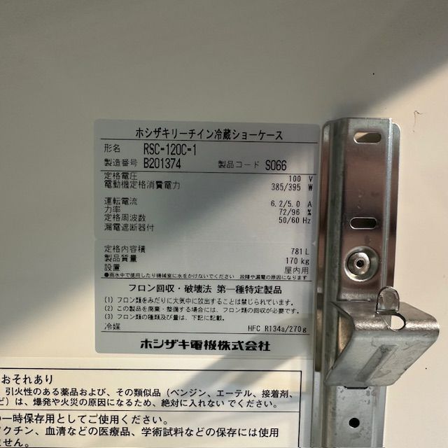 他の画像を見る 2012年製 ホシザキ リーチイン冷蔵ショーケース RSC-120C-1 東京足立店 中古品 単相100V 販売価格 ¥ 110,000 税込 SOLD OUT W1200xD650xH1890商品ランク:B 詳細を見る お気に入りに登録する