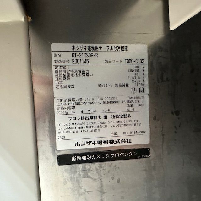 他の画像を見る 2015年製 ホシザキ 冷蔵コールドテーブル RT-210SDF-R 東京足立店 中古品 単相100V 販売価格 ¥ 60,500 税込 SOLD OUT W2100xD750xH800商品ランク:B 詳細を見る お気に入りに登録する