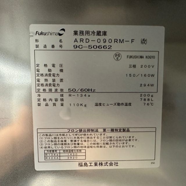 他の画像を見る 2019年製 フクシマガリレイ 縦型冷凍庫 ARD-090RM-F(改) 東京足立店 中古品 三相200V 販売価格 ¥ 135,300 税込 SOLD OUT W900xD800xH1950商品ランク:B 詳細を見る お気に入りに登録する