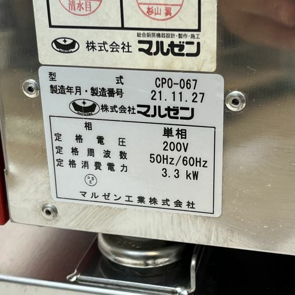 他の画像を見る 2021年製 マルゼン 電気ピッツァ窯 カリノ CPO-067 東京足立店 中古品 単相200V 定価 ¥ 957,000 のところ 販売価格 ¥ 473,000 税込 SOLD OUT W635xD725xH655(+800)商品ランク:A 詳細を見る お気に入りに登録する