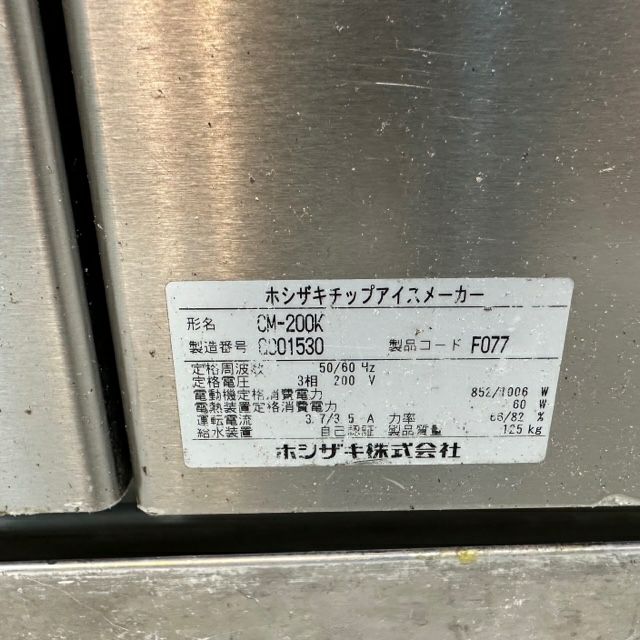 他の画像を見る 2017年製 ホシザキ 200kgチップアイスメーカー CM-200K 東京足立店 中古品 三相200V 販売価格 ¥ 169,400 税込 SOLD OUT W1060xD600xH800商品ランク:C 詳細を見る お気に入りに登録する