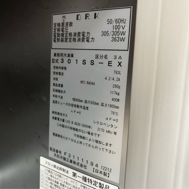 他の画像を見る 2022年製 大和冷機 縦型冷凍庫 301SS-EX 東京足立店 中古品 単相100V 販売価格 ¥ 180,400 税込 W900xD800xH1905商品ランク:A カートに入れる お気に入りに登録する