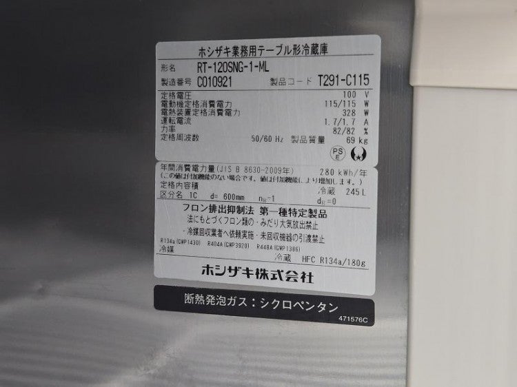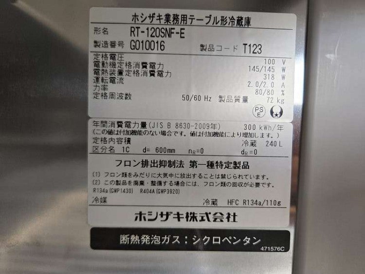 他の画像を見る 2023年製 ホシザキ 冷蔵コールドテーブル RT-120SNG-1-ML 愛知店 中古品 単相100V 定価 ¥ 904,200 のところ 販売価格 ¥ 137,500 税込 W1200xD600xH800商品ランク:B カートに入れる お気に入りに登録する