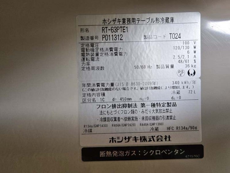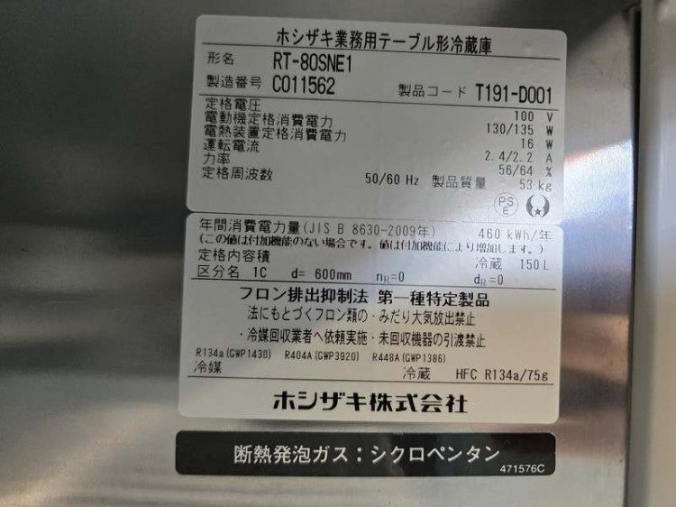 他の画像を見る 2023年製 ホシザキ 冷蔵コールドテーブル RT-80SNE1 愛知店 中古品 単相100V 定価 ¥ 613,800 のところ 販売価格 ¥ 99,000 税込 W800xD650xH800商品ランク:B カートに入れる お気に入りに登録する