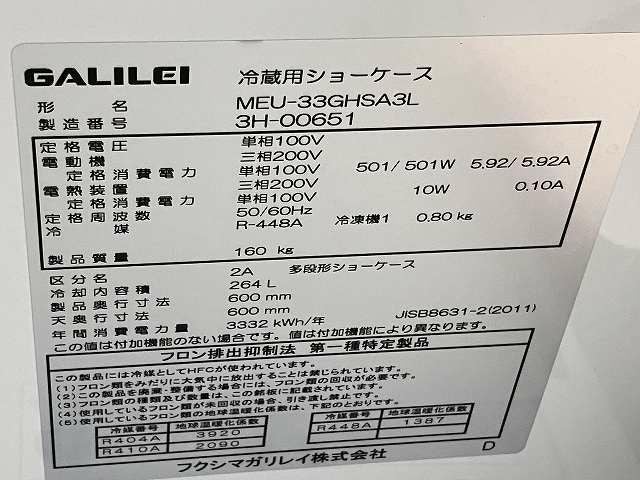 他の画像を見る 2023年製 フクシマガリレイ オープン多段冷蔵ショーケース MEU-33GHSA3L 愛知店 中古品 単相100V 定価 ¥ 1,008,700 のところ 販売価格 ¥ 385,000 税込 W900xD600xH1500商品ランク:A カートに入れる お気に入りに登録する