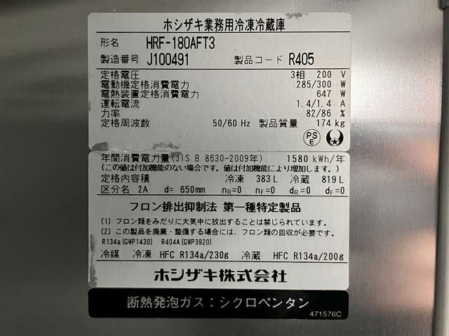他の画像を見る 2019年製 ホシザキ 縦型冷凍冷蔵庫 HRF-180AFT3 愛知店 中古品 三相200V 定価 ¥ 1,725,900 のところ 販売価格 ¥ 181,500 税込 SOLD OUT W1800xD650xH1910商品ランク:B 詳細を見る お気に入りに登録する