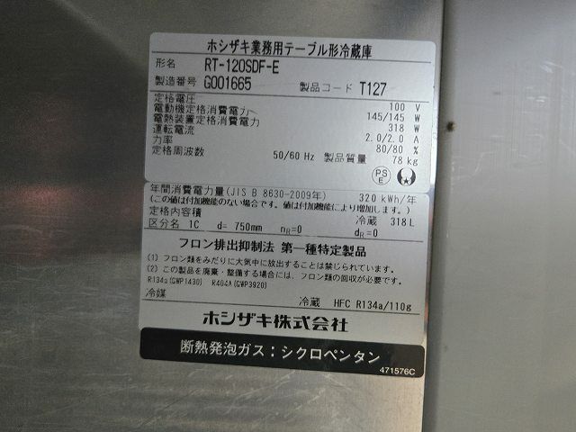 他の画像を見る 2017年製 ホシザキ 冷蔵コールドテーブル RT-120SDF-E 愛知店 中古品 単相100V 定価 ¥ 851,400 のところ 販売価格 ¥ 77,000 税込 W1200xD750xH800商品ランク:B カートに入れる お気に入りに登録する