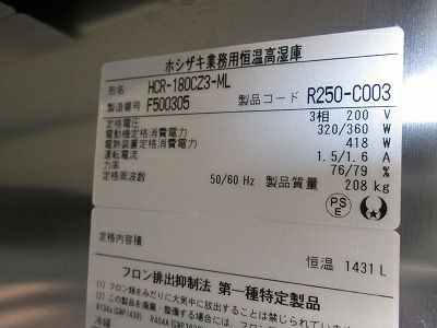 他の画像を見る 2016年製 ホシザキ 縦型恒温高湿庫 HCR-180CZ3-ML 愛知店 中古品 三相200V 定価 ¥ 2,020,700 のところ 販売価格 ¥ 132,000 税込 SOLD OUT W1800xD800xH1890商品ランク:B 詳細を見る お気に入りに登録する