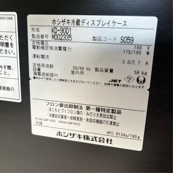 他の画像を見る 2022年製 ホシザキ 冷蔵ディスプレイケース KD-90D1 東京足立店 中古品 単相100V 定価 ¥ 409,200 のところ 販売価格 ¥ 126,500 税込 W932xD390xH770商品ランク:B カートに入れる お気に入りに登録する