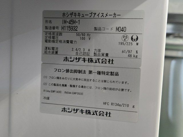 他の画像を見る 2016年製 ホシザキ 35kg製氷機 IM-35M-1 愛知店 中古品 単相100V 定価 ¥ 594,000 のところ 販売価格 ¥ 143,000 税込 SOLD OUT W500xD450xH800商品ランク:C 詳細を見る お気に入りに登録する