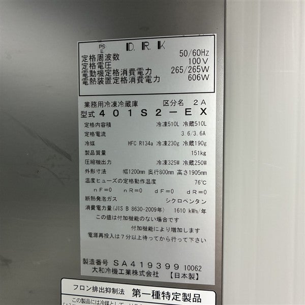 他の画像を見る 2022年製 大和冷機 縦型冷凍冷蔵庫 401S2-EX 大阪店 中古品 単相100V 販売価格 ¥ 198,000 税込 W1200xD800xH1905商品ランク:B カートに入れる お気に入りに登録する