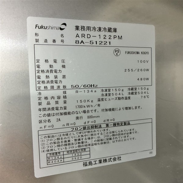 他の画像を見る 2018年製 フクシマガリレイ 縦型冷凍冷蔵庫 ARD-122PM 大阪店 中古品 単相100V 定価 ¥ 1,521,300 のところ 販売価格 ¥ 161,700 税込 W1200xD800xH1950商品ランク:B カートに入れる お気に入りに登録する