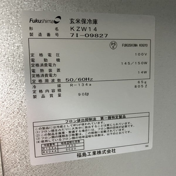 他の画像を見る 2017年製 フクシマガリレイ 玄米保冷庫 KZW14 大阪店 中古品 単相100V 販売価格 ¥ 55,000 税込 W900xD800xH1905商品ランク:B カートに入れる お気に入りに登録する