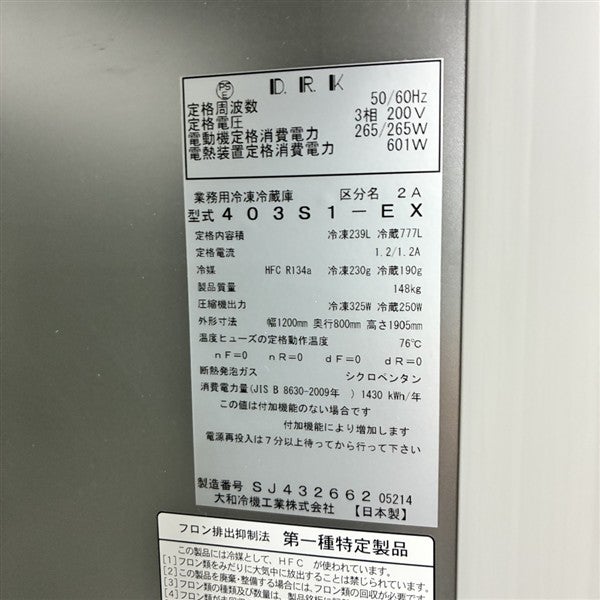 他の画像を見る 2024年製 大和冷機 縦型冷凍冷蔵庫 403S1-EX 大阪店 中古品 三相200V 販売価格 ¥ 218,900 税込 W1200xD800xH1905商品ランク:B カートに入れる お気に入りに登録する