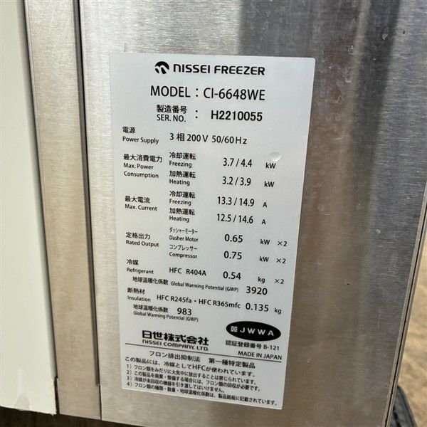 他の画像を見る 2021年製 日世 ソフトクリームサーバー CI-6648WE 大阪店 中古品 三相200V 販売価格 ¥ 990,000 税込 W527+41xD768xH1512商品ランク:B カートに入れる お気に入りに登録する
