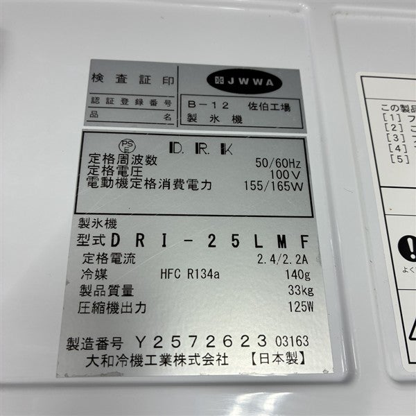 他の画像を見る 2023年製 大和冷機 25kg製氷機 DRI-25LMF 大阪店 中古品 単相100V 販売価格 ¥ 143,000 税込 W395xD450xH770商品ランク:B カートに入れる お気に入りに登録する