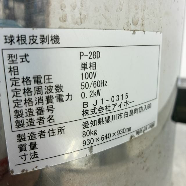 他の画像を見る 2018年製 アイホー 球根皮むき機 P-28D 大阪店 中古品 単相100V 販売価格 ¥ 118,800 税込 W640xD930xH930商品ランク:B カートに入れる お気に入りに登録する