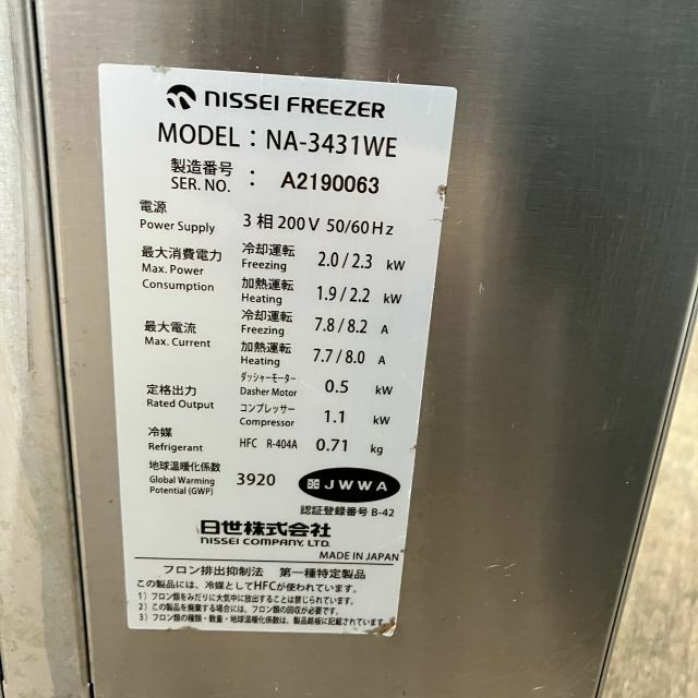 他の画像を見る 2019年製 日世 ソフトクリームサーバー NA-3431WE 大阪店 中古品 三相200V 販売価格 ¥ 396,000 税込 W427+41xD799xH1519商品ランク:B カートに入れる お気に入りに登録する
