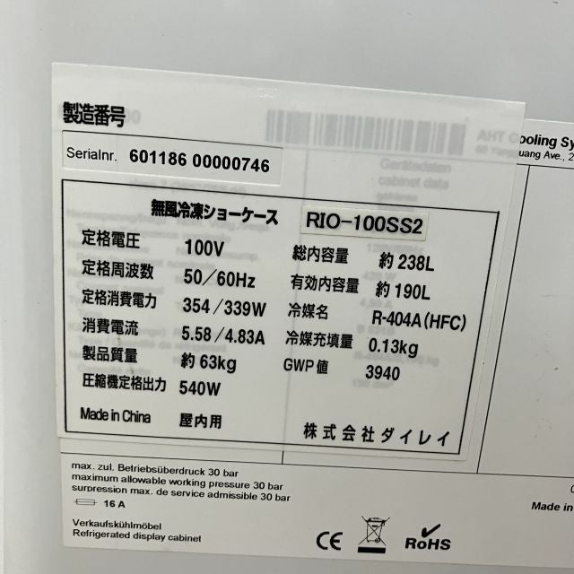 他の画像を見る 2016年製 ダイレイ 冷凍ショーケース RIO-100SS2 大阪店 中古品 単相100V 販売価格 ¥ 68,200 税込 W1000xD650xH880商品ランク:B カートに入れる お気に入りに登録する